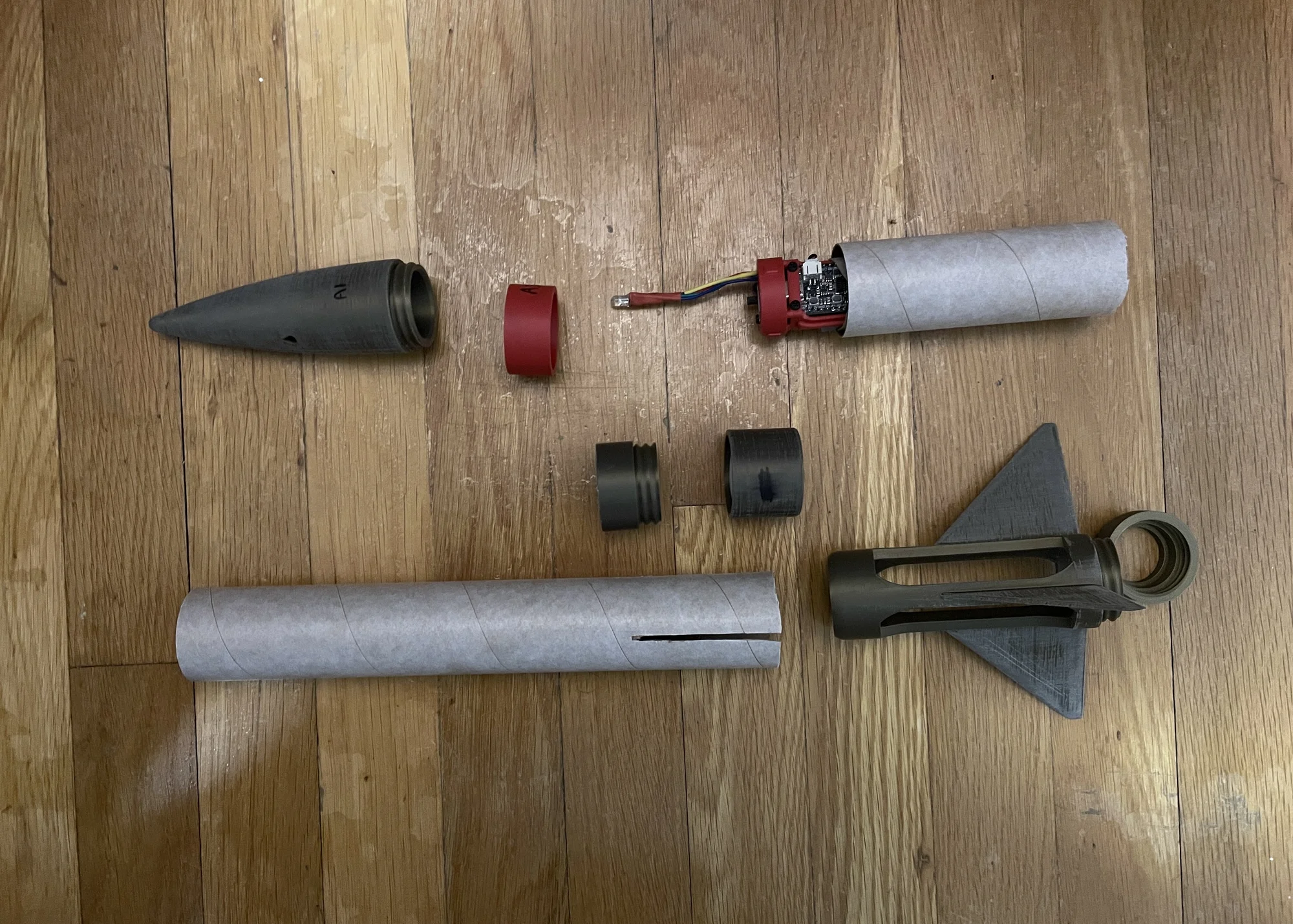 Once the rocket is fully planned out in OpenRocket, I can move on to creating a 3D model of any custom components. Autodesk Fusion is my go-to CAD software, and it is where I do all of my rocketry designs. For most of my rockets, the nosecone, any couplers/shoulders, and the fins and fin can are all 3D printed. This allows for a lot of customization in my rockets, allowing for easy iterations and small adjustments. I use my Bambu Lab P1S to print these parts, generally with PLA (specifically Bambu's PLA Tough+ at the moment). I assemble printed and non-printed parts (like body tubes) using two-part epoxy most of the time. I have used both a launch rod and a launch rail (mainly for ARC), and use my custom-built launch controller at launches.